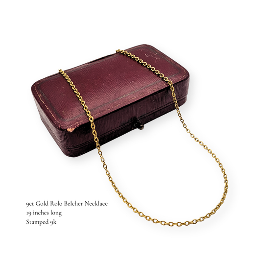 9ct Gold Rolo Belcher Chain 19" Long, Spring Ring Clasp