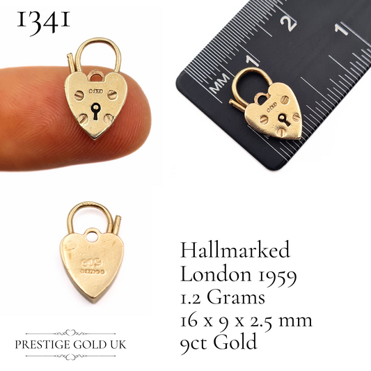 Vintage Small Gold Heart Padlock Pendant 9ct