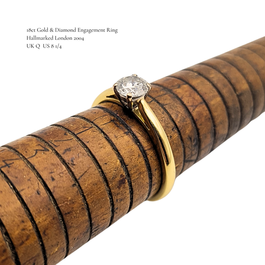 Quality 18ct Gold Diamond Solitaire Engagement Ring UK Q / US 8.25