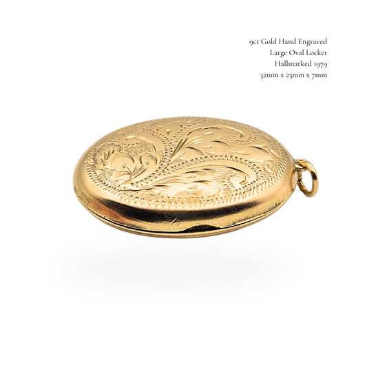 Large 9ct Gold Oval Locket 1979 Hallmarked Hand Engraved Floral Pendant