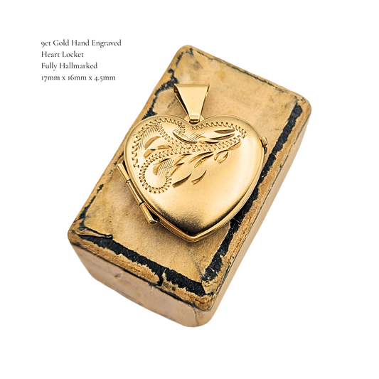9ct Gold Small Heart Locket Pendant Engraved Floral Fully Hallmarked