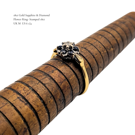 Antique 18ct Gold Sapphire and Old Cut Diamond Ring - UK N US 6 3/4 Euro 54