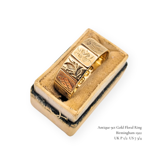 Antique 9ct Gold Floral Panel Ring, Birmingham 1922, P 1/2