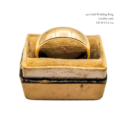 9ct Gold Wide Wedding Band, London 1966, UK M US 6 1/4
