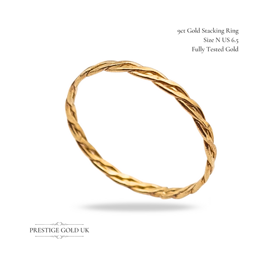 9ct Gold Braided Stacking Ring, Size N UK / 6 3/4 US, 2mm Wide Narrow Small Band