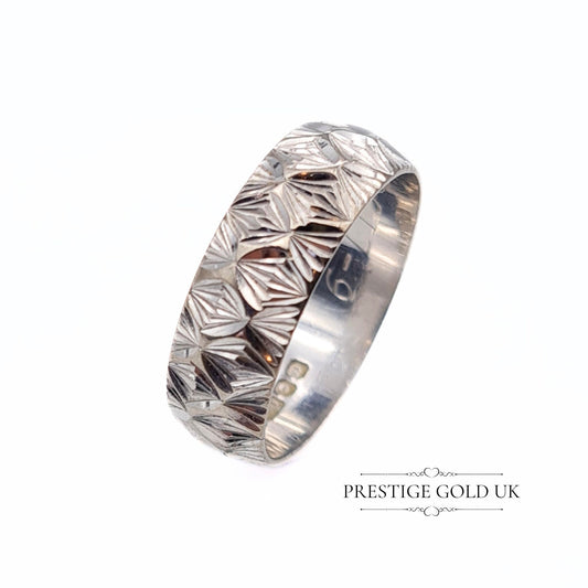 Vintage White Gold Patterned Ring 18ct - Size UK L 1/2, US 6, Euro 52