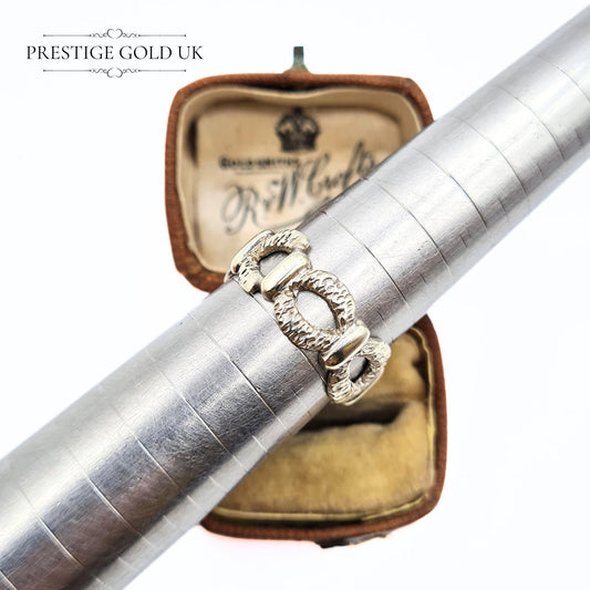 Vintage White Gold Tree Bark Pattern Hollow Ring - UK M, US 6 1/4, Euro 52.5
