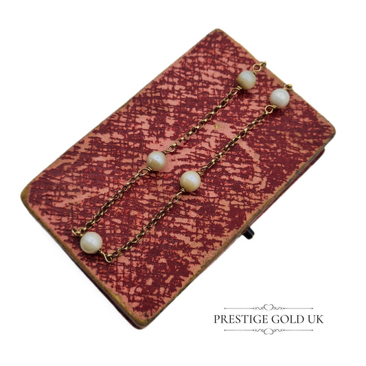 9ct Gold Rolo Chain & Pearl Bracelet - 7.5" Long