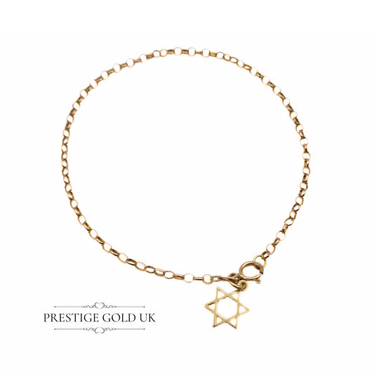 Star Of David Delicate Rolo Chain Bracelet - 8"