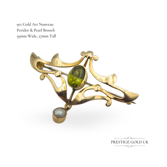 Antique 9ct Gold Art Nouveau Peridot & Pearl Brooch