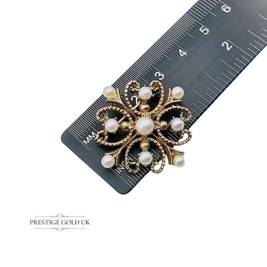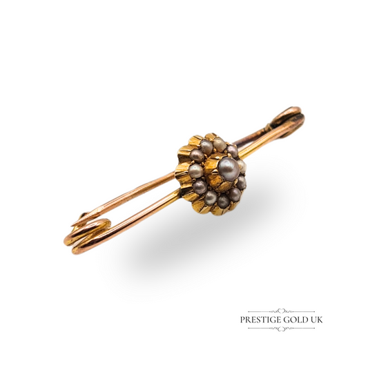 Small 9ct Gold Antique Brooch with Seed Pearls, 9 375 Hallmarked,