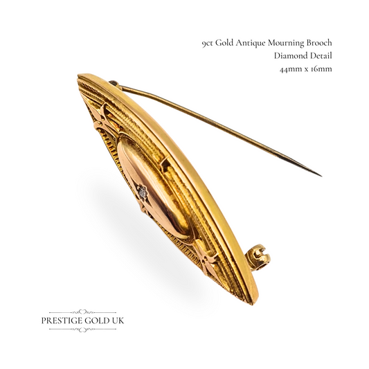 Victoria 1891 Rose Gold Mourning Brooch, Chester Hallmark Diamond Set Keepsake