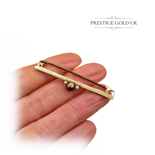 Vintage 9ct Gold Bar Brooch with Black & White Pearls, 4.5cm, 1 3/4 ” Length,