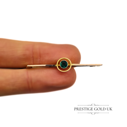 Antique 9ct Gold Bar Brooch with Round Cut Cat’s Eye Stone - CLEARANCE