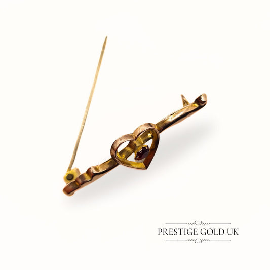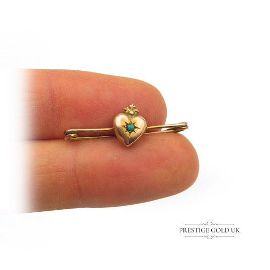 Antique 9ct Gold Heart Brooch with Turquoise Stone