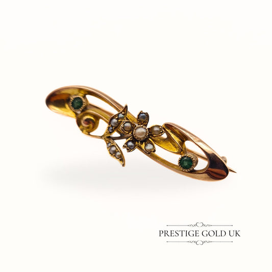 Antique Emerald & Pearl Victorian Brooch in 9ct Gold