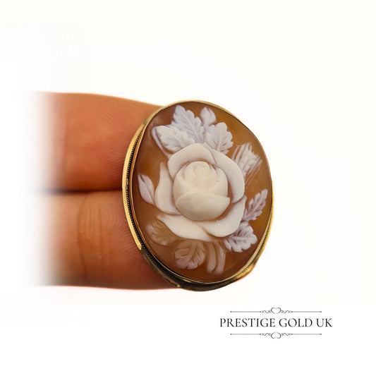 14ct Gold Ladies Cameo Brooch & Pendant - Carved Rose Design