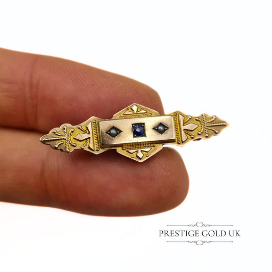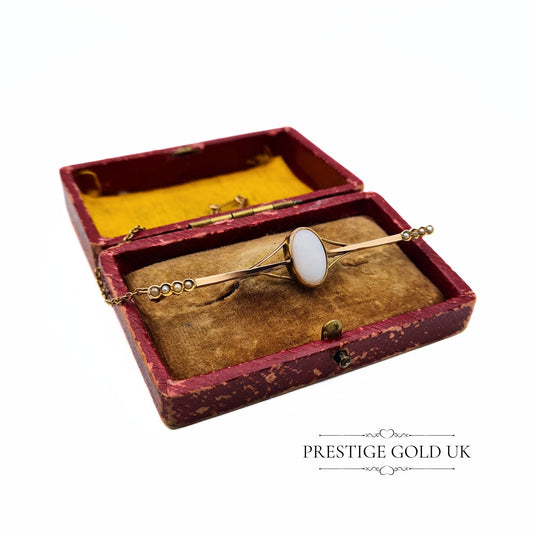 Antique 9ct Gold, Opal & Seed Pearl Bar Brooch