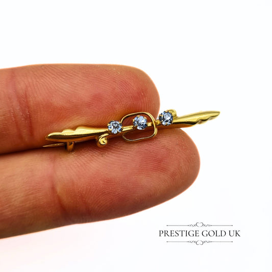 Vintage Solid 9ct Gold & 3 Stone Paste Brooch