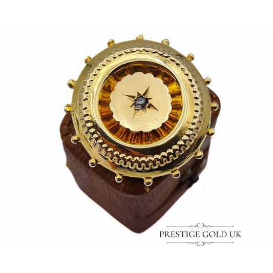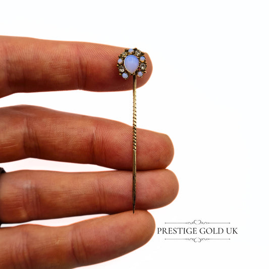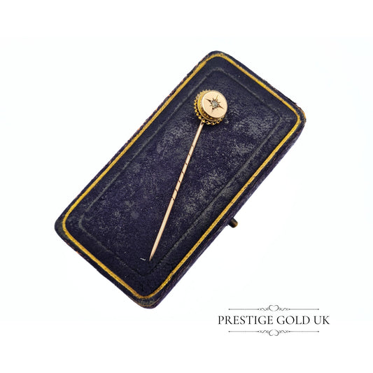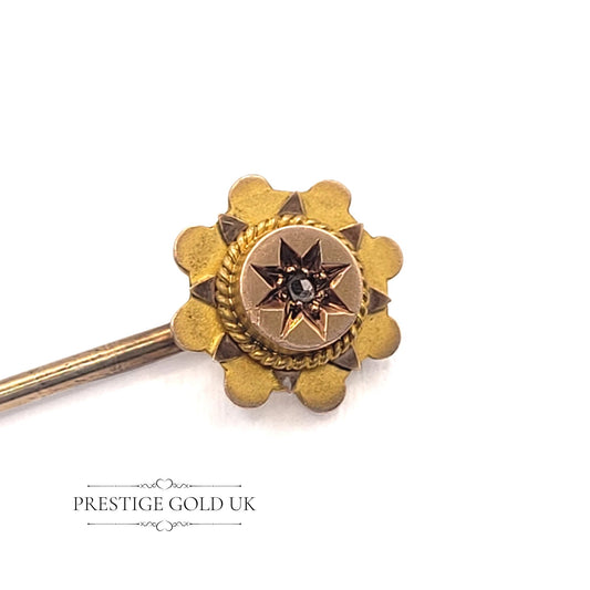 Antique Round 9ct Gold & Diamond Stick Pin / Hat Pin