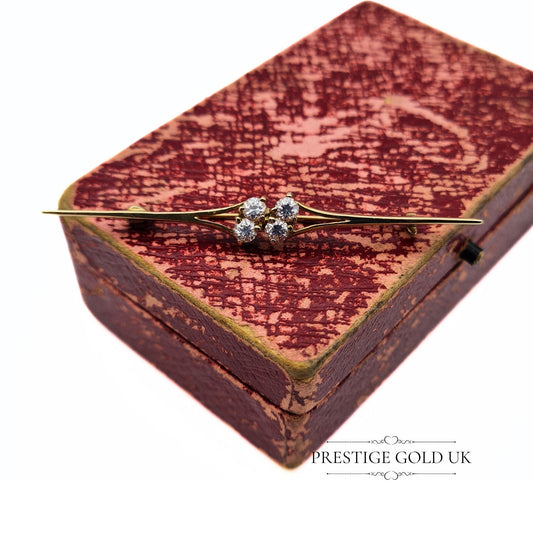 Antique 9ct Solid Gold & Diamond Flower Hat Pin