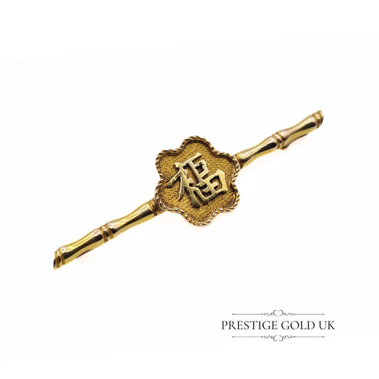 Vintage Gold Chinese Good Luck Bar Brooch 14ct