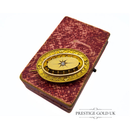 Antique Edwardian Solid Gold Diamond Mourning Brooch 9ct