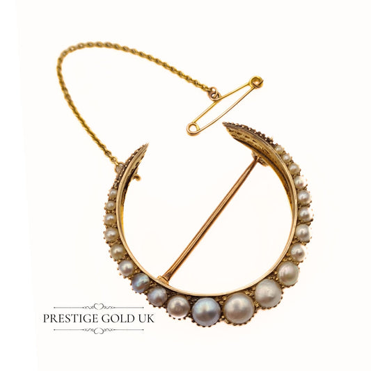 Antique 15ct Gold & Pearl Crescent Moon Brooch