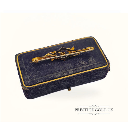 Vintage Solid Rose Gold Leaf Bar Brooch 9ct