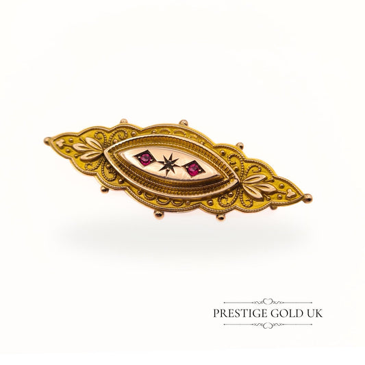 Antique 9ct Gold Rhodolite Garnet & Diamond Mourning Brooch