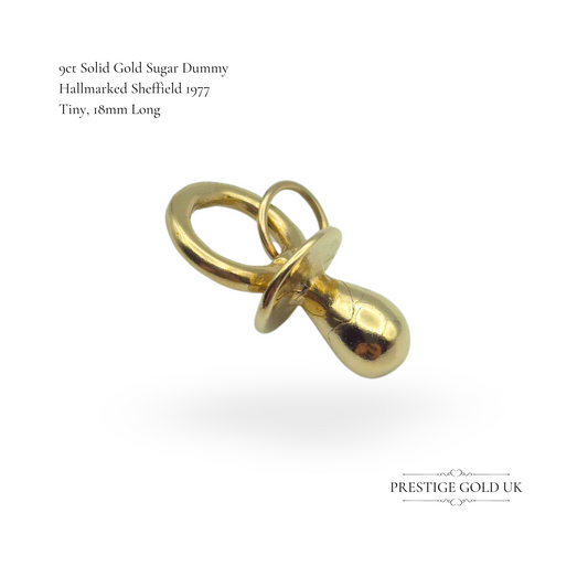 9ct Gold Small Sugar Dummy Charm, Fully Hallmarked Sheffield 1977