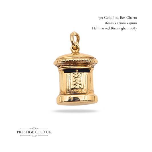 Small 9ct Gold British Red Post Box Charm, Double Aperture Pillar Box
