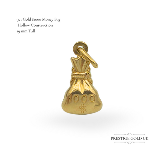 Vintage 9ct Gold $1000 Dollar Money Bag Charm or Pendant