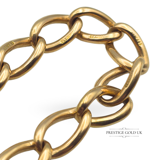 9ct Gold Solid Heavy Charm Bracelet, 7 1/4" (18.5cm) Long