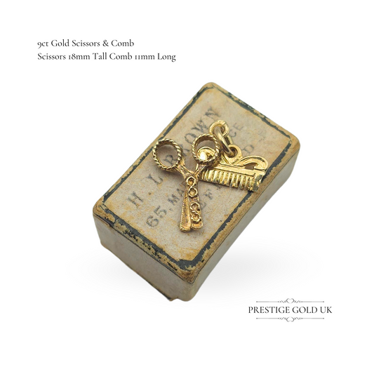 Vintage 9ct Gold Scissors & Comb Charm, Hairdresser Barber Stylist Gift