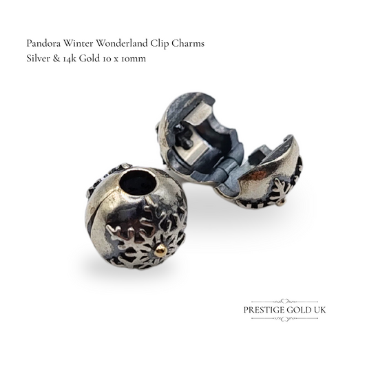 Pair of Pandora Silver Winter Wonderland Snowflake Charms 14k Gold ALE 791232