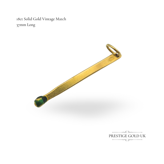18ct Gold Matchstick Charm, Enamel Tip, 37mm, Unique Solid Gold Gift