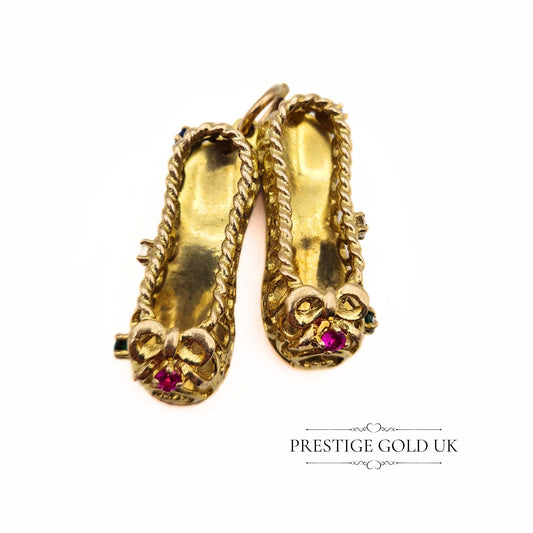 Vintage 9ct Gold Slippers Charm With Gemstones