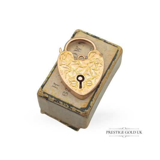 Antique William Lewis Engraved Heart Padlock 9ct Gold