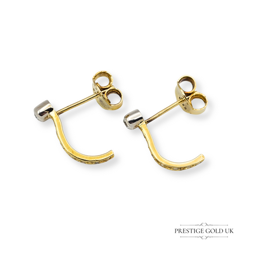 14ct Gold Diamond Half Hoop Earrings, J Shape Design with White Gold Detail