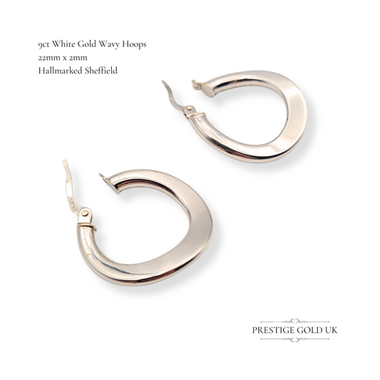 9ct White Gold Wavy Hoop Earrings, Secure Flip Top Fasteners