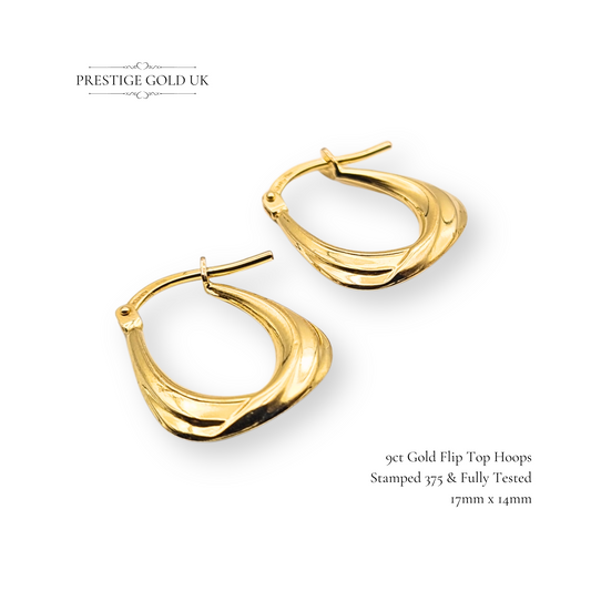 9ct Small Chunky Gold Hoop Earrings With Secure Flip Top Fasteners.