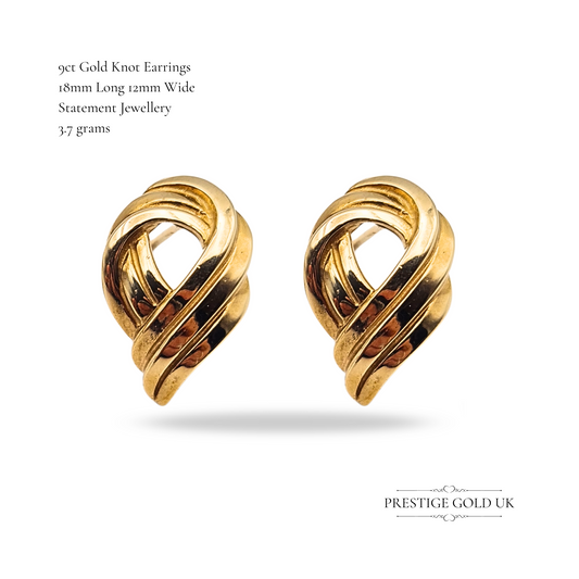 9ct Gold Twist Knot Earrings, 3-Strand Swirl Design, Statement Earrings