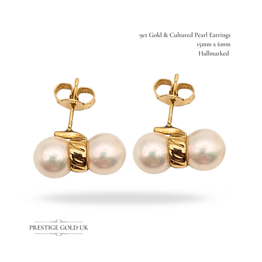 Large 9ct Gold Twin Pearl Earrings With Butterfly Backs