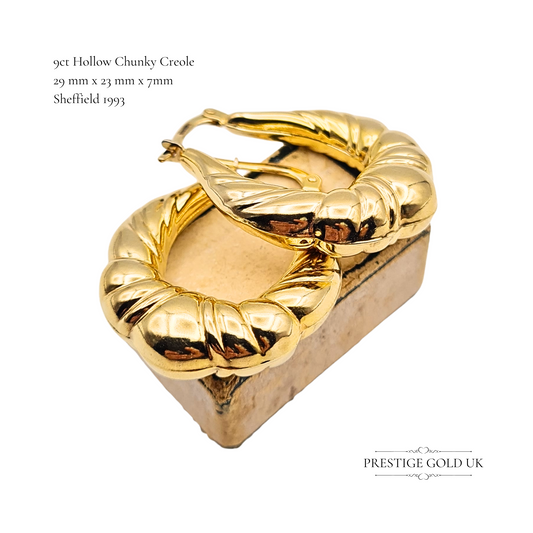 9ct Gold Chunky Creole Hoop Earrings, Statement Chunky Hoops in a Gypsy Style