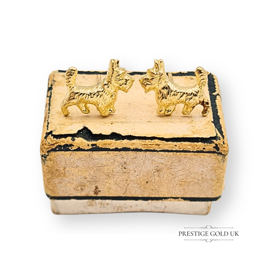 9ct Gold Scottie Dog Small Stud Earrings, Lightweight Scottish Terrier Jewellery