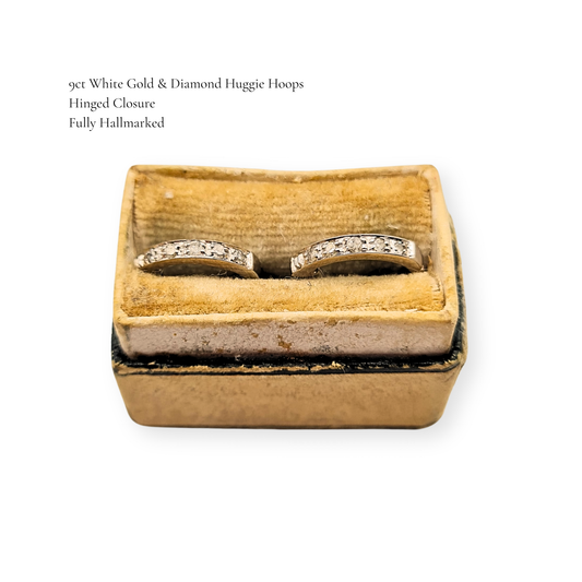 Tiny 9ct White Gold Diamond Huggie Hoop Earrings Fully Hallmarked