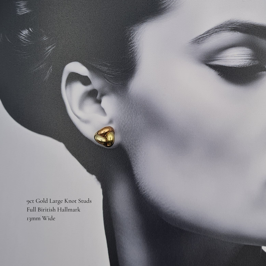 Large 9ct Gold 3 Colour Knot Studs, 13mm, Solid, Hallmarked