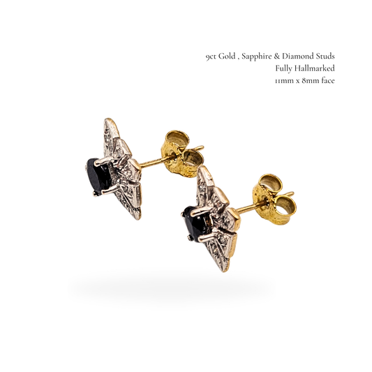 9ct Gold Sapphire Diamond Stud Earrings, Kite Shape