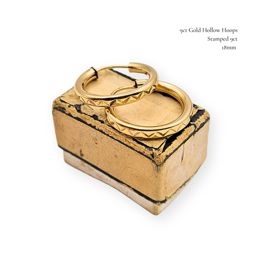 9ct Gold 18mm Hollow Hoop Earrings Zig Zag Pattern 9ct
